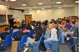 During his time on campus, Ernie participated in several events organized by our chapter. Ernie introduced a new flavor to the lectureship series, skillfully incorporating humor to many sensitive topics on diversity. With his own personal story to reference, students were engaged by his unique perspective. In addition to this lecture, the Biff Hoffman lecturers always participate in a discussion with the chapter, as well as a dinner with students, faculty, and administrators.