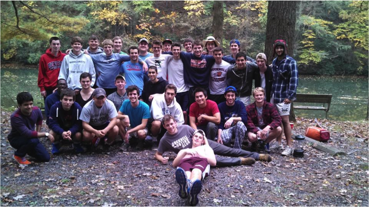 The night started with Chi Phi members arriving to take over one end of the campground in waves. Nine tents spread over ten campsites in a matter of minutes and the fun began. A few took to the tranquil Kettle Creek, which flowed just feet away from the campsites, to try to fish. The only successful anglers were Matt Argiro ‘14 and George Green ‘16, so we had to settle on steaks, potatoes, and hot dogs over an open fire for dinner. After dinner, we sent out scouting parties to gather firewood, which brought back enough for a roaring fire. New member Alec Creta ‘16 and I even proved our lumberjack abilities in taking out a whole tree. The accomplishment became a lot less satisfying when we realized we had no means of cutting it to fit in the fire ring, and discovered rashes on our stomachs the next morning from climbing all over it. Nonetheless, the night was full of great memories sitting around the fire, telling stories, playing pranks, and roasting marshmallows.